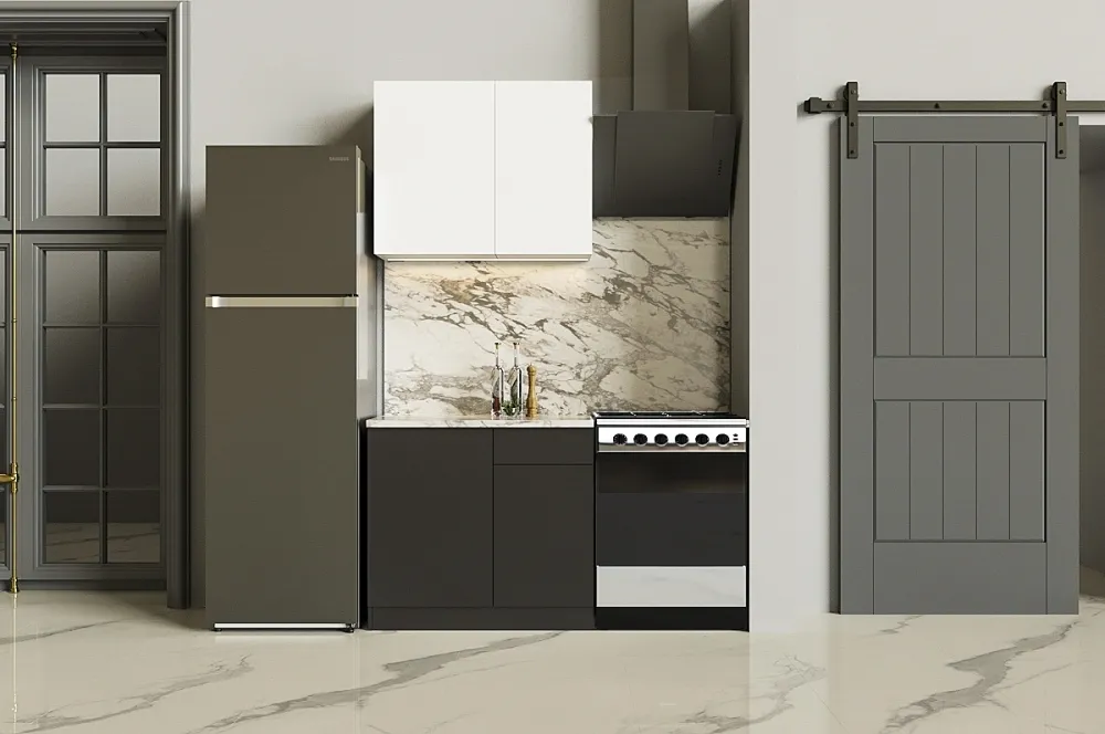 Ручки, столешница, стеновая панель, мойка, смеситель и бытовая техника продаются отдельно.